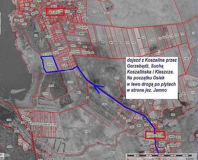 Warunki wykonania przyłączy do uzgodnienia z instytucjami branżowymi. Dojazd - jadąc z Koszalina przez Suchą Koszalińską przed Osiekami skręcamy w lewo w drogę z płyt, którą jedziemy ok. 300 m w stronę jez.Jamno i po prawej stronie znajdują się sprzedawane działki.