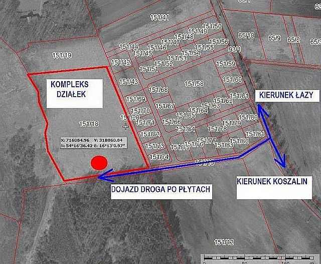 Kompleks 12 działek położonych ok.150 m od jez. Jamno w miejscowości Osieki.