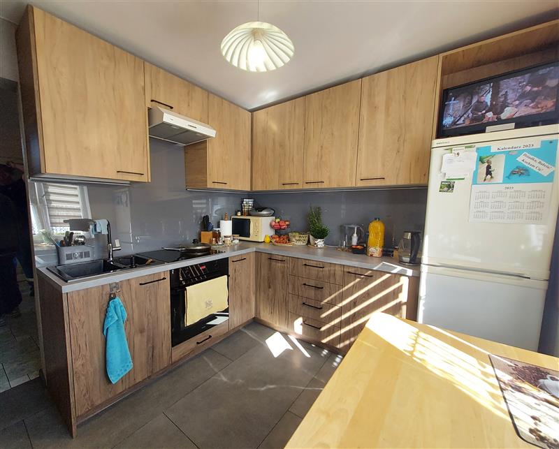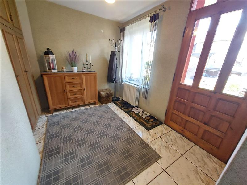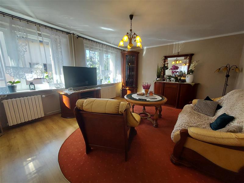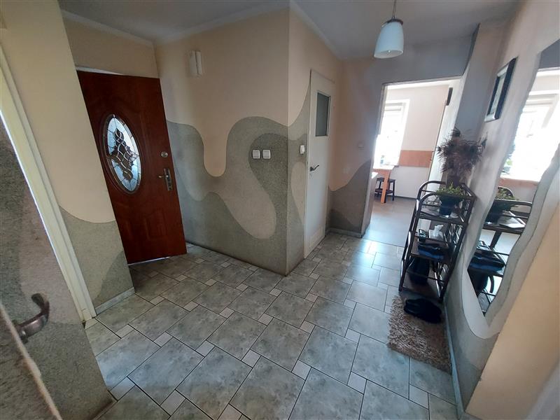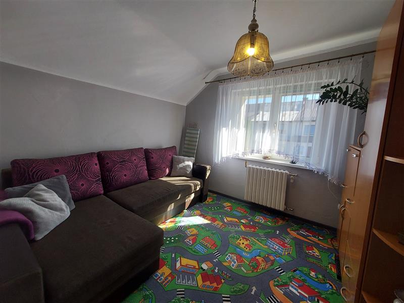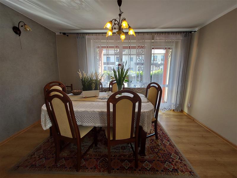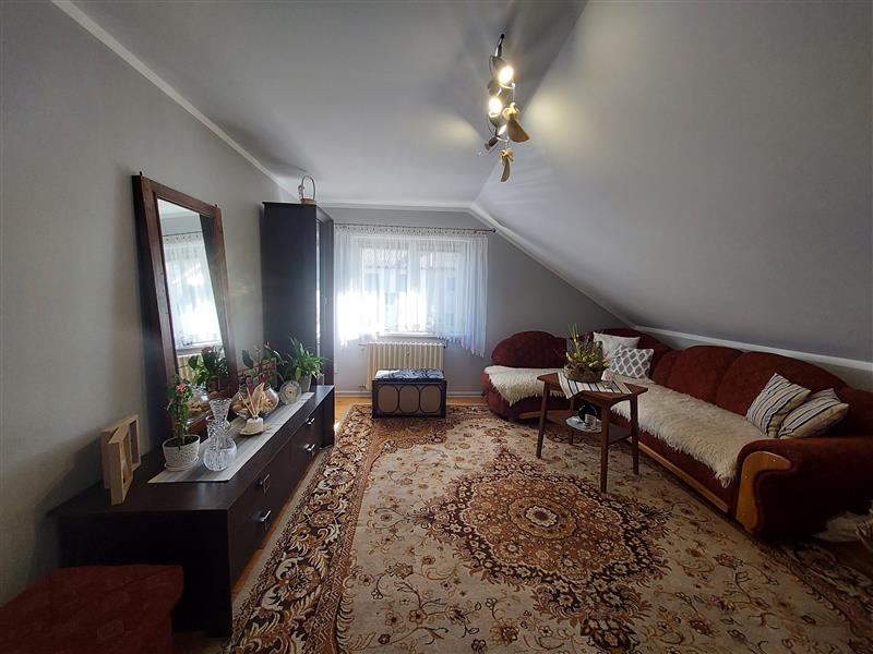 Główne drzwi wejściowe znajdują się na podwyższonym parterze, wnętrze składa się z trzech poziomów z czego na parterze znajdują się: przedsionek, korytarz, kuchnia, salon, jadalnia, balkon, oraz jeden pokój, na piętrze znajdują się cztery pokoje, balkon oraz łazienka. W piwnicy pomieszczenia gospodarcze, garaż, kotłownia, magazyn na pellet. Stan techniczny całego obiektu jest dobry.