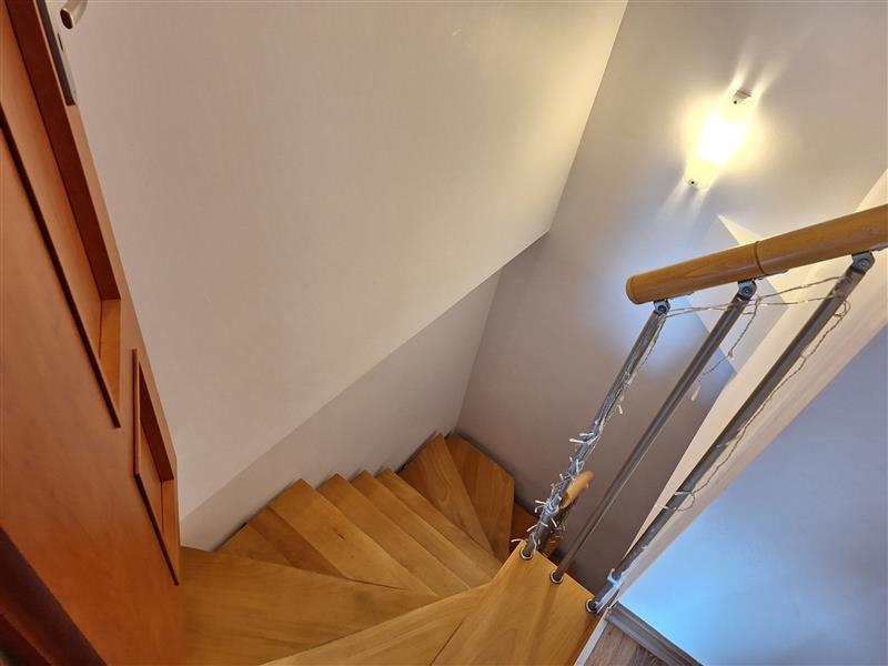 W sercu mieszkania znajduje się wystawny salon, z którego można przejść na bardzo słoneczną loggię, lub do sąsiadującej kuchni, oraz na korytarz. Z korytarza jest wejście do dwóch pokoi i pomieszczenia gospodarczego, oraz schody na wyższe piętro. Drugie piętro ma charakter niezależnego apartamentu, z dużą przestrzenią sypialniano-wypoczynkową, oraz stylową łazienką. Mieści się tam również suszarnia/prasowalnia.