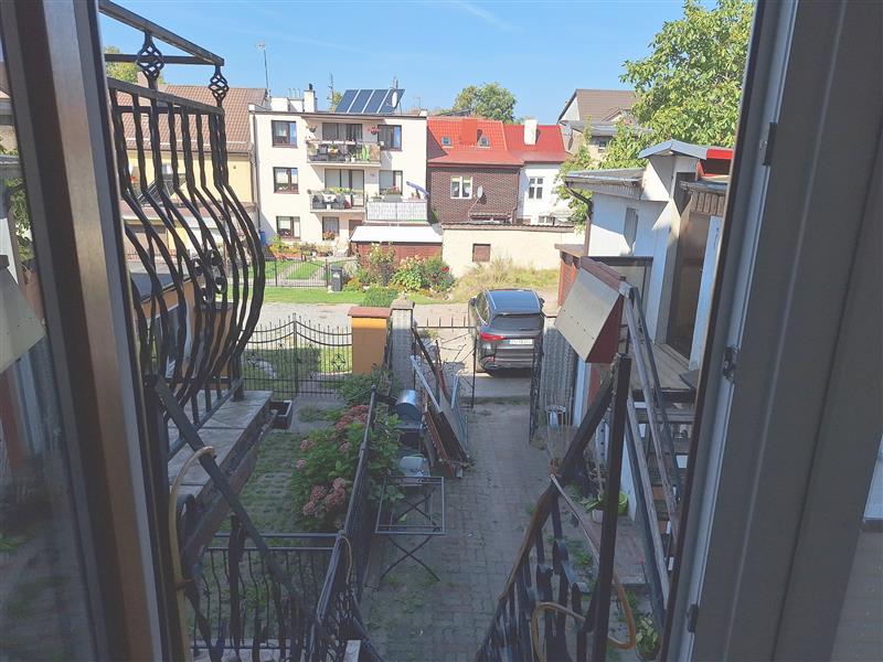Z lokalem związany jest udział w działce gruntu o powierzchni 166 mkw., oraz częściach wspólnych budynku. Na wspólnym podwórku, do którego ma dostęp dwóch sąsiadów, znajduje się również przydzielona do lokalu dwupoziomowa komórka.