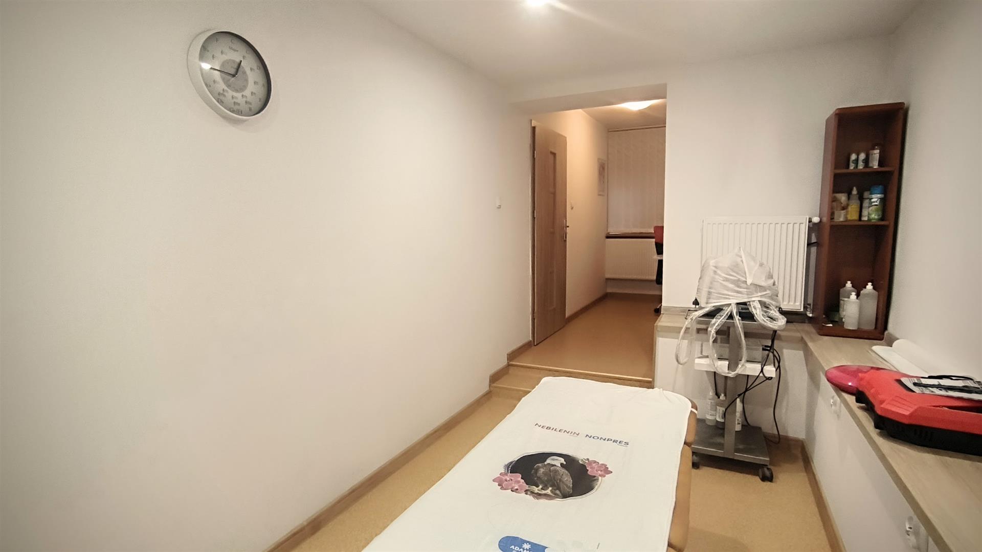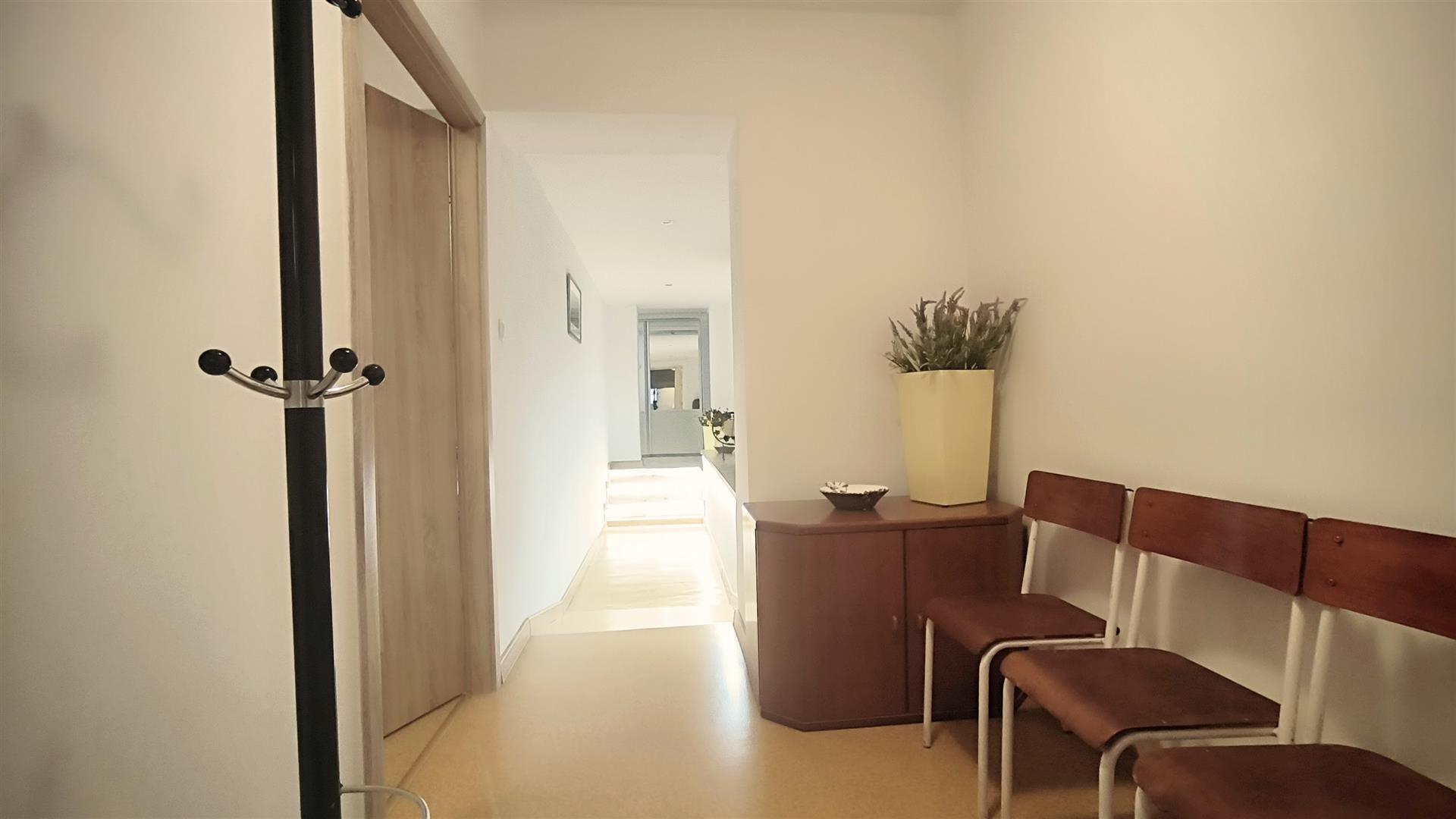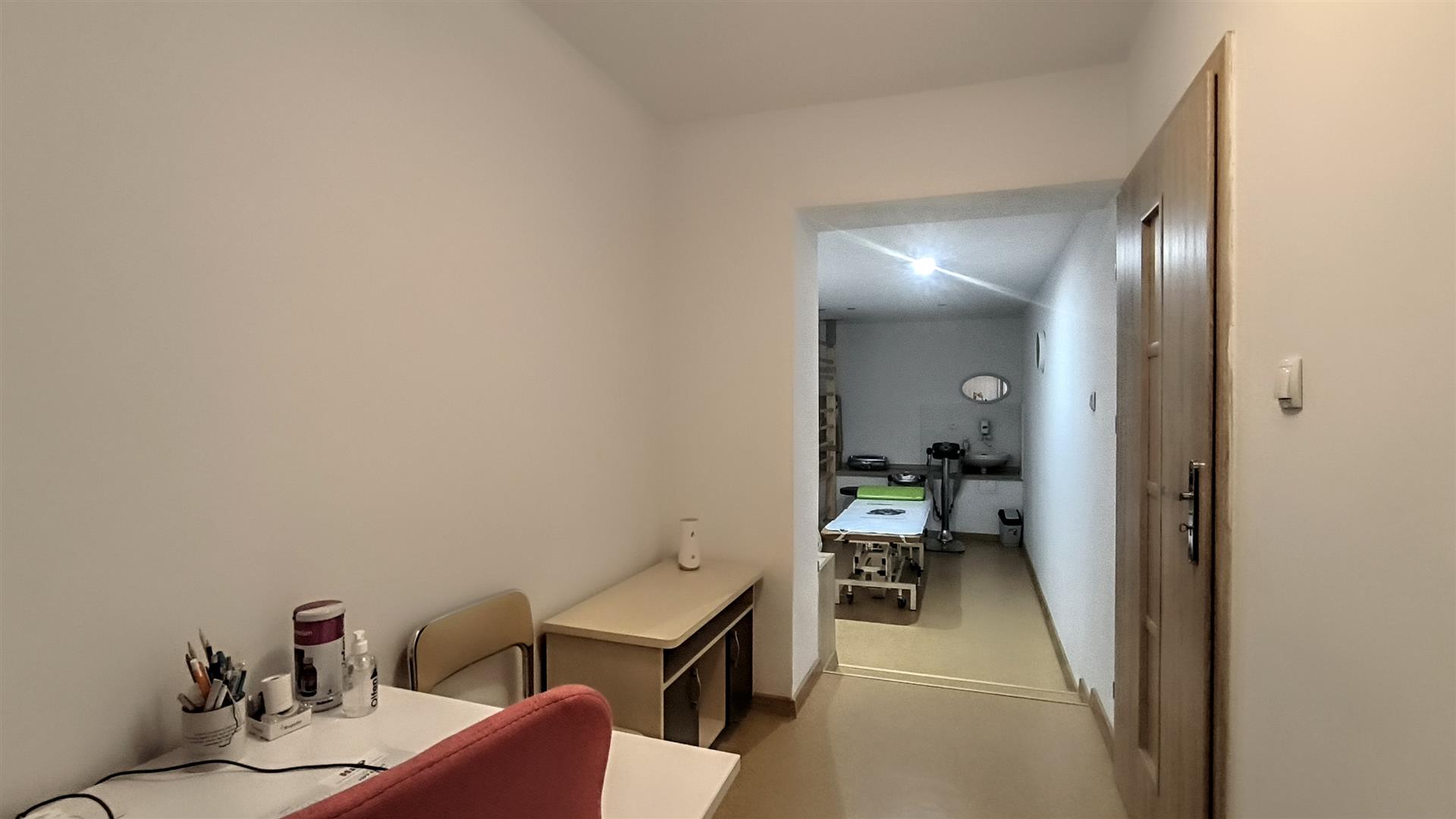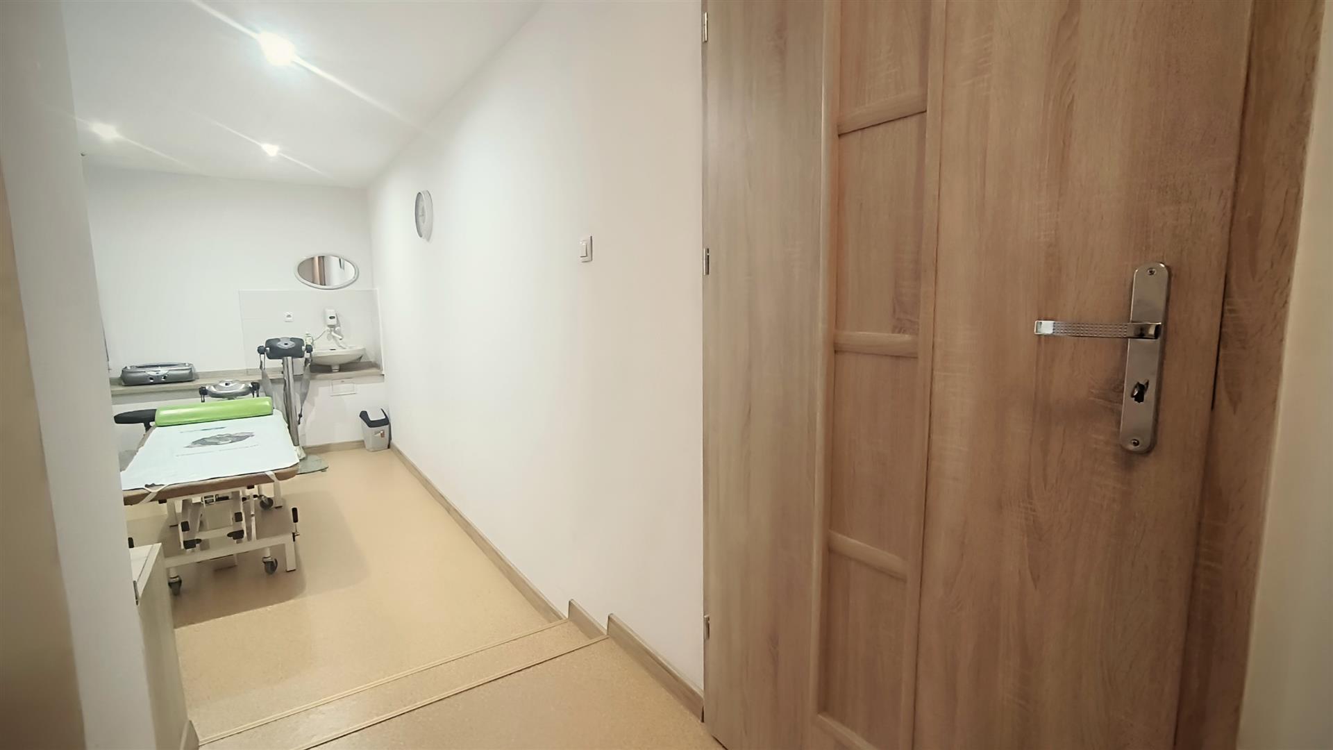 Drugi lokal o powierzchni 37,57 m2 charakteryzuje się przestronnym przedpokojem efektownie podświetlonym LED-ami oraz poczekalnią. W dalszej części znajdują się dwa pomieszczenia z przeznaczeniem pod działalność medyczną: gabinet lekarski oraz gabinet do fizjoterapii. Z obu lokali jest dostęp do w c.