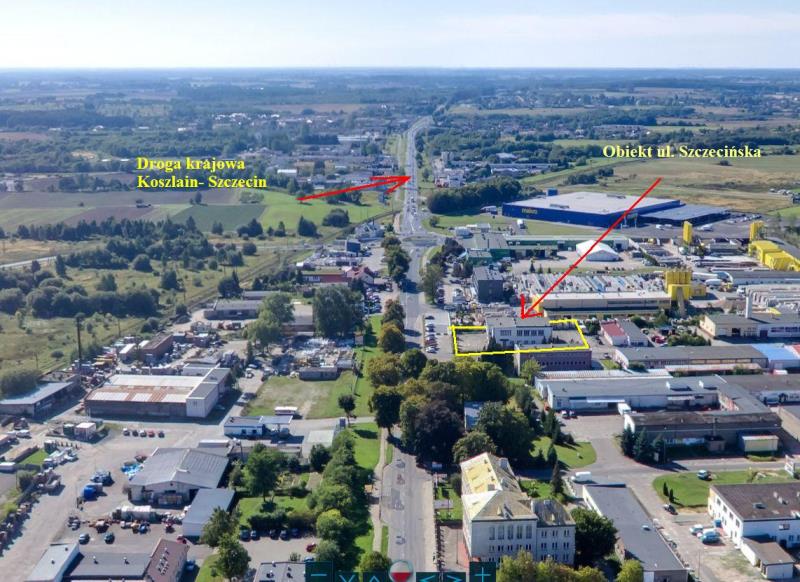 Obiekt handlowo - usługowy położony przy trasie Koszalin - Szczecin (A6), bezpośrednio przy ul. Szczecińskiej w sąsiedztwie zabudowy obiektów handlowych przemysłowych oraz usługowych.